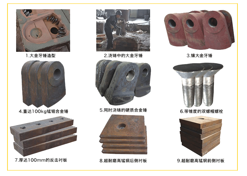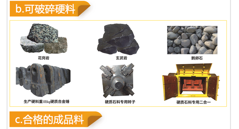 河卵石、花崗巖、玄武巖、鐵礦石、石灰石、石英石、輝綠巖、建筑垃圾、鐵礦、金礦等