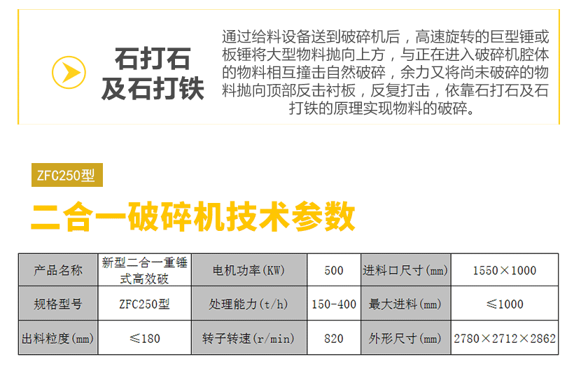 【進料粒度】: ≤350mm-1000mm 【生產能力】:40-400t/h